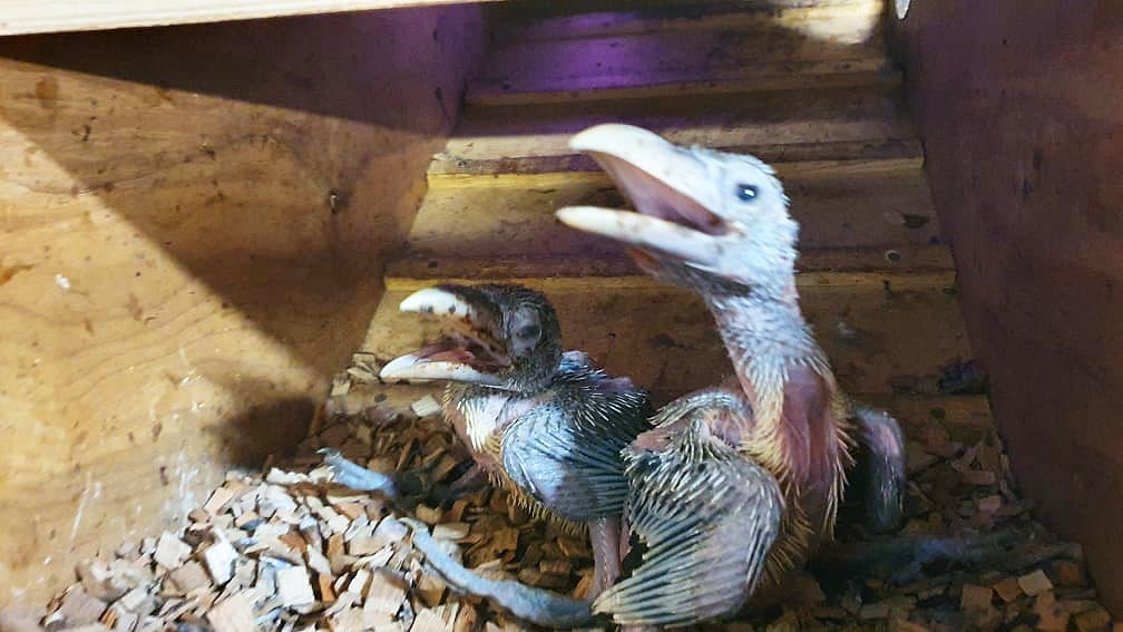 The nests of these birds are hollows in trees. The female lays 2 to 4 eggs and incubates them for 16 days.